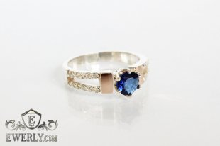Серебряное кольцо с золотыми вставками и красным камнем