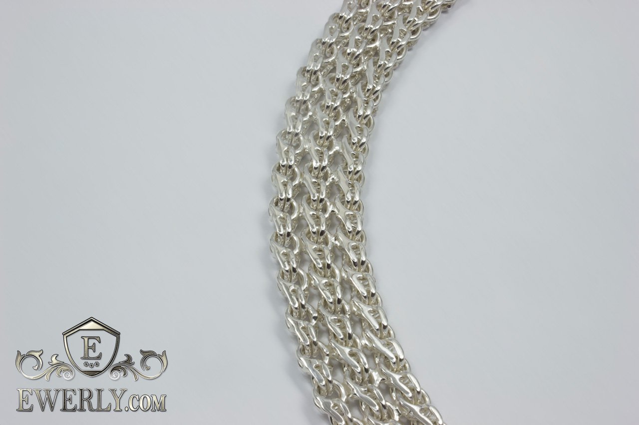 Тройной боковой бисмарк отлично подходит в качестве плетения для серебряных браслетов. Цепочки с большой массой не рекомендуем, есть вероятность, что не будет должным образом лежать на шее.