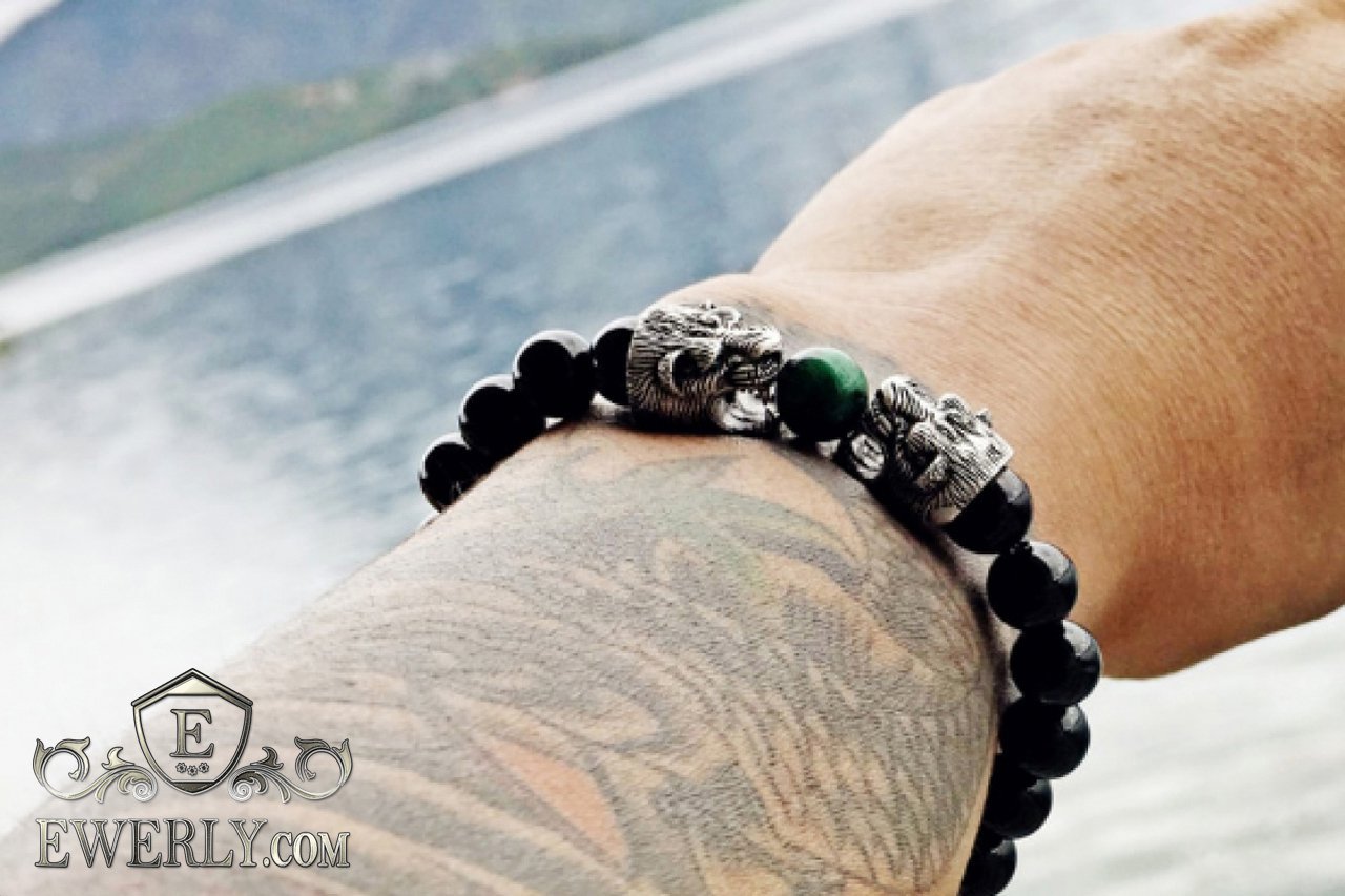 Чоловічий кам'яний браслет з вулканічної лави на руку 123058HD