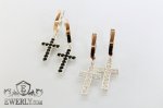 Жіночі срібні сережки - хрести зі срібла з золотом (чорні камені)